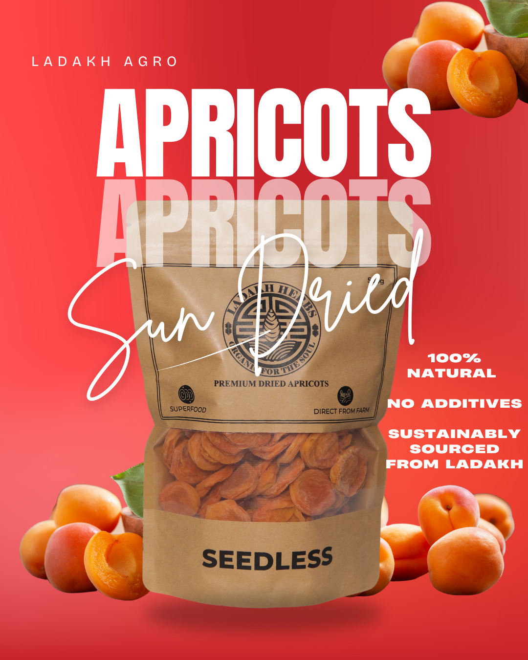 Dried apricots from Ladakh are naturally sun-dried fruits grown in the pristine, high-altitude valleys of the Himalayas. These apricots are known for their rich flavor, vibrant orange hue, and high nutritional value, cultivated without the use of chemicals or preservatives. The extreme weather and mineral-rich soil of Ladakh enhance their sweetness and nutrient density.