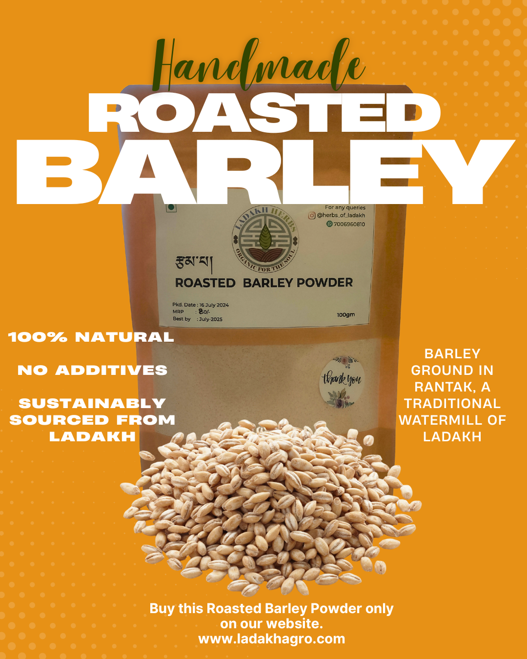 Roasted barley flour is known as ‘Tsampa’ in Tibetan and locally ‘Nyam-phey‘ is a Tibetan and Himalayan staple foodstuff, particularly prominent in the central part of the region. It is roasted and then ground into flour in traditional water mills called ‘rantak‘ which keeps the nutrient intact.