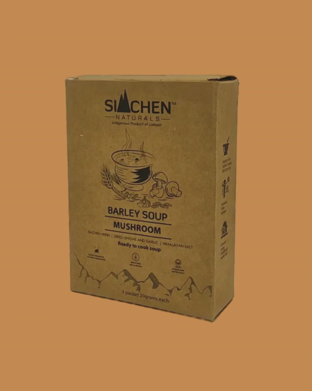 The Barley & Mushroom Soup Mix combines the nutty richness of Ladakhi barley with the deep umami of locally cultivated mushrooms. Barley, a staple crop in Ladakh’s harsh terrain, is known for its high fibre content, slow-release energy, and digestive benefits. When paired with nutrient-dense Himalayan mushrooms renowned for their earthy flavour and mineral profile the result is a hearty, warming soup that is both satisfying and wholesome. This mix delivers a rustic, gourmet experience, making it suitable as a stand-alone meal or a nutritious evening comfort bowl.